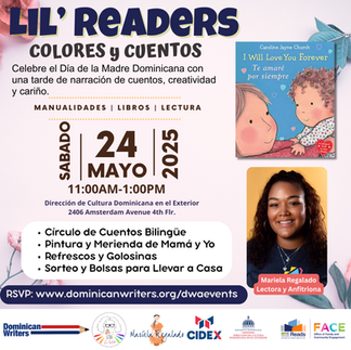 Celebrate Dominican Mother’s Day with an afternoon of storytelling, creativity, and cariño! Lil' Readers bring you Colores y Cuentos, a bilingual family event that brings together mothers and children to honor their bond through books, painting, and joyful moments.
