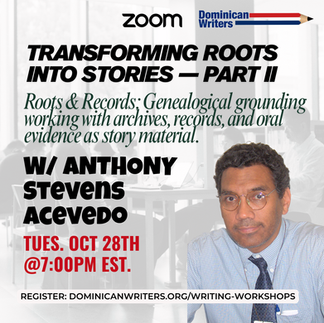 The Dominican Writers Association invites you to join us for Transforming Roots into Stories — Part II, a 6-week workshop series where genealogy meets creative expression. Building on our first genealogy workshop, this series goes deeper: moving from records and memory into narrative, poetry, and multimedia storytelling.